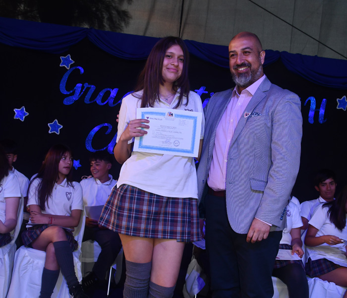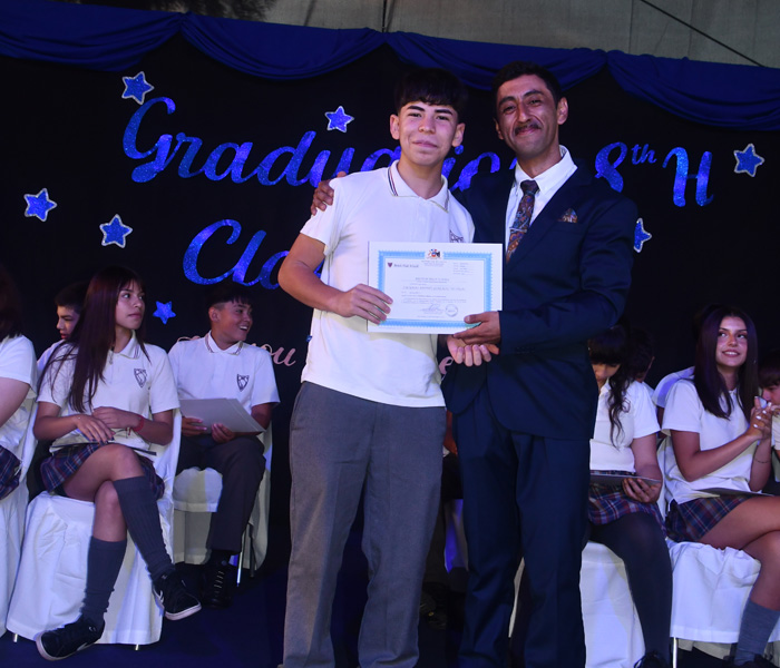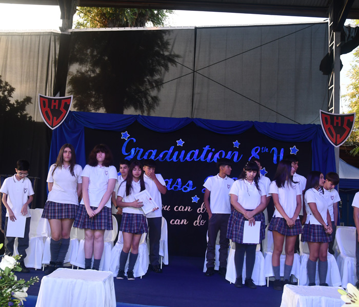 En una ceremonia cargada de emoción y alegría nuestro colegio procedió a graduar a sus estudiantes de 8° básico que cumplen una etapa importante de su vida escolar, con la asistencia entusiasta de padres, apoderados, familiares y amigos se produjo el cierre de la enseñanza media para este querido grupo de estudiantes. Les deseamos lo mejor en esta nueva etapa que emprenden.